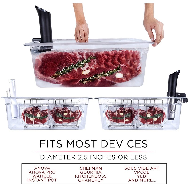 - FITS MOST DEVICES: 2.5" Lid Opening fits Nano, Anova, Joule and the majority of cookers.