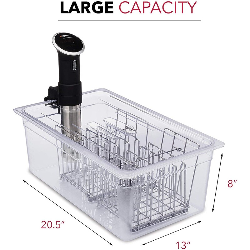 - LARGE CAPACITY - 26 Quart Kit of Container/Racks/Lid/Insulating Sleeve Fits 10 steaks or chicken breasts and large cuts like whole brisket that you can't squeeze into the 12 Quart. Perfect for large families, parties, commercial kitchens.