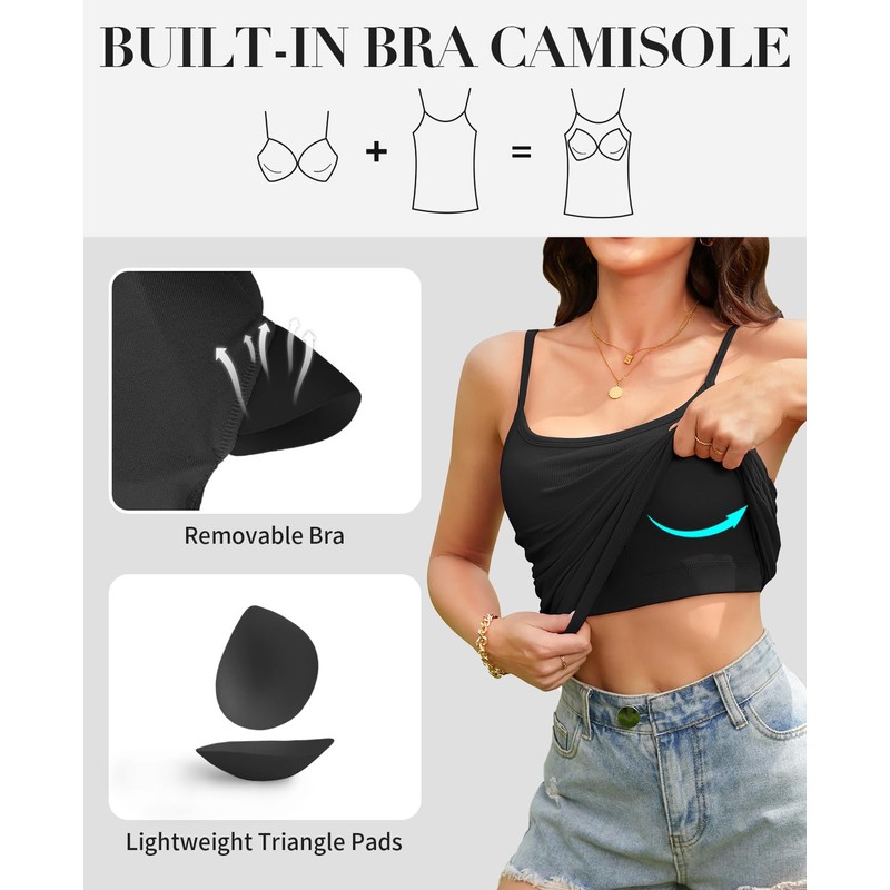 - REMOVABLE PADDED BRA: SLIM FIT! RUN SMALL!!! Camis with built-in bra provides slightly support and coverage