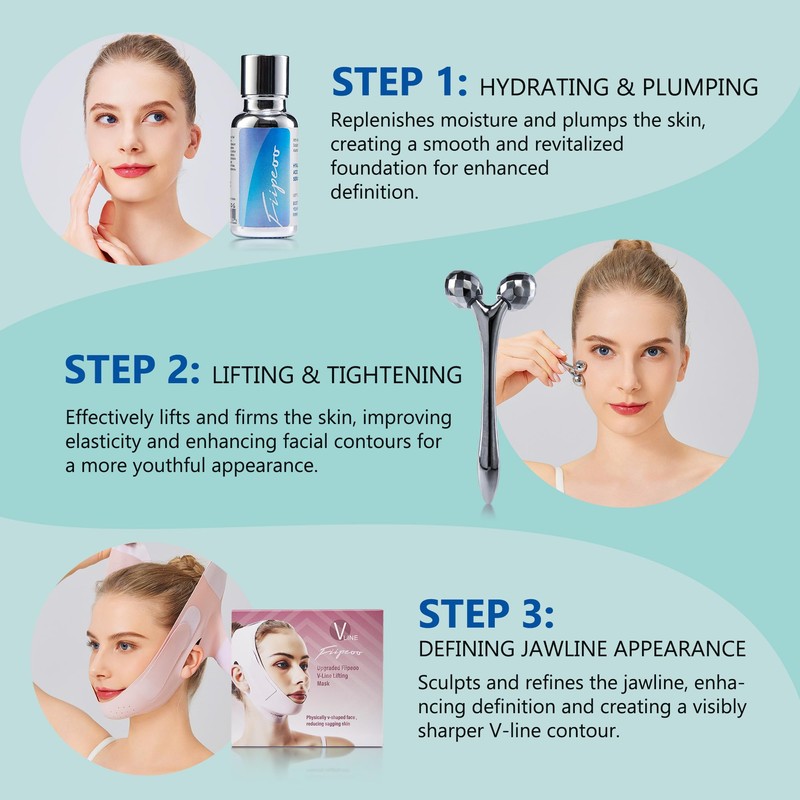 V Line Lifting Kit for Women, Double Chin Strap w/ 3D Face Roller & Hyaluronic Acid Serum for Face Lifting and Jawline Shaper | Comfortable, Adjustable, and Pressure-Free (Pink, M)
