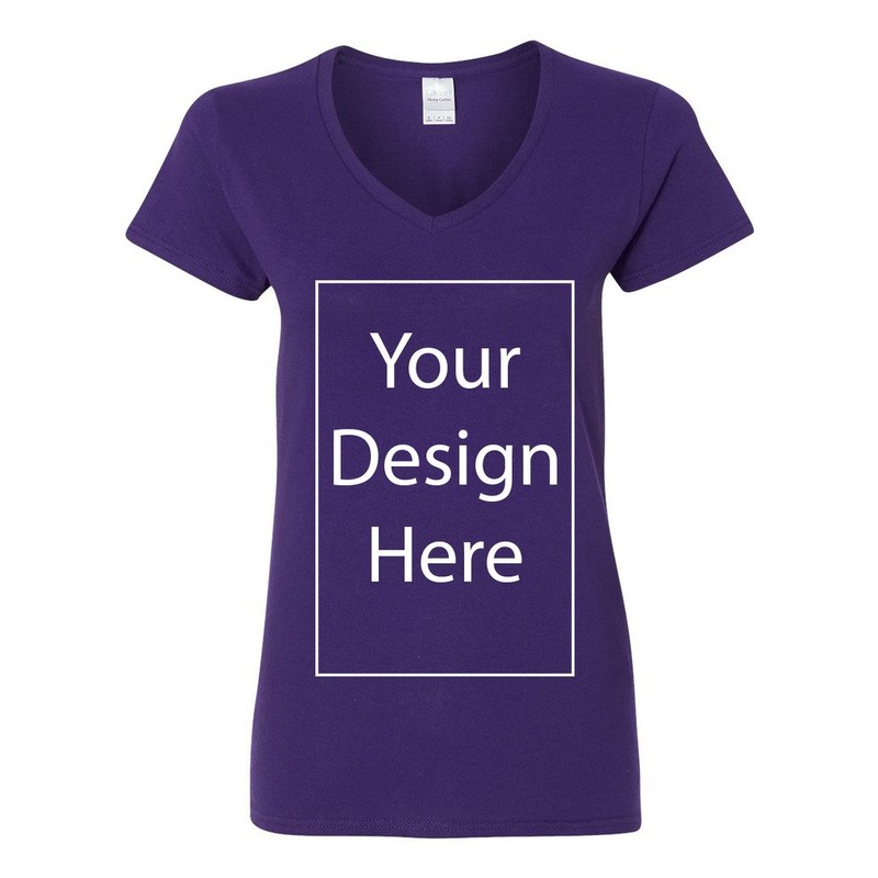 V-Neck Ladies Add Your Own Text Design Custom Personalized T-Shirt Tee (XX-Large, Purple)