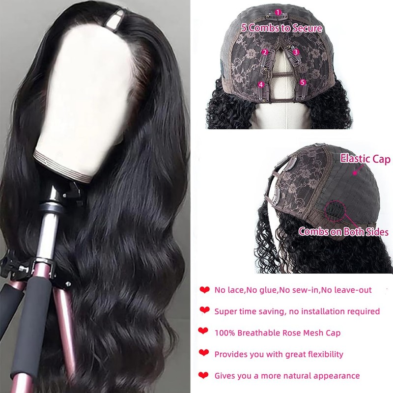 - Quick Installation and Use: The body wave v part wig human hair for women,just fix the claw comb on your hair, Can Be Adjusted With Straps And Combs.can be protects your scalp.You can use it in various occasions such as cocktail parties,festivals, and role playing.It is also the Best Choice for You to Give as Gifts to Relatives and Friends.