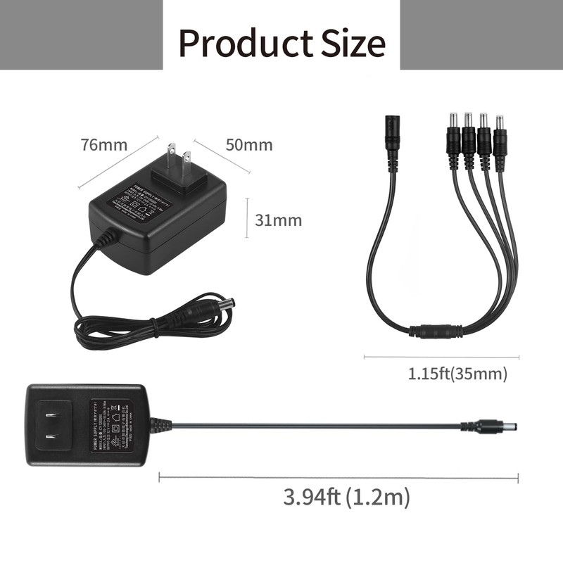 Package Contents: 1 x 12V 2A Power Adapter and 1 x 4 Branch Cable