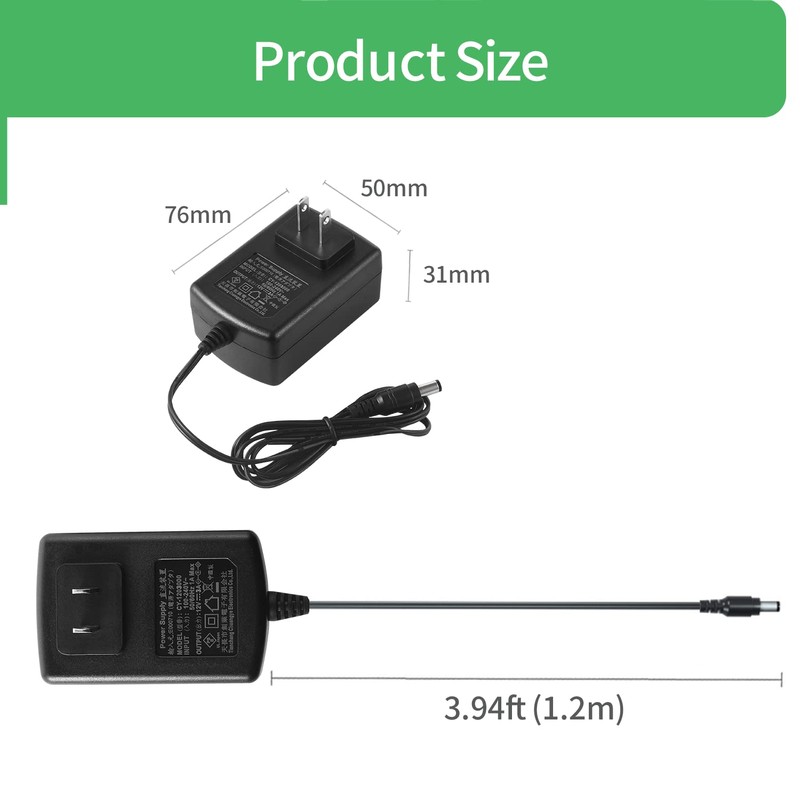 • Output Plug: Outer Diameter 0.2 inch (5.5 mm) x Inner Diameter 0.08 inch (2.1 mm) Cable Length: 47.2 inch (1