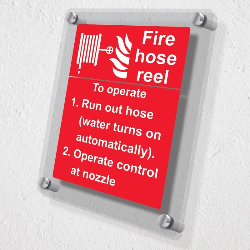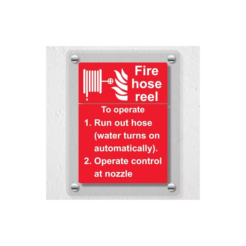 V Safety Fire Hose Reel - Automatic 150 x 200 mm - Acrylic Perspex Cast Clear Safety Sign