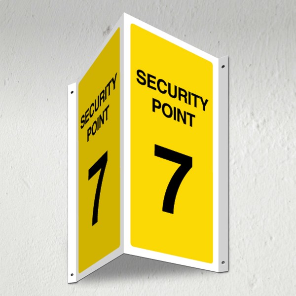 V Safety Security Point 7-3D Corridor Sign 340 x 300 mm - 3mm Indoor Palboard + Fold & Drill Holes - Customised