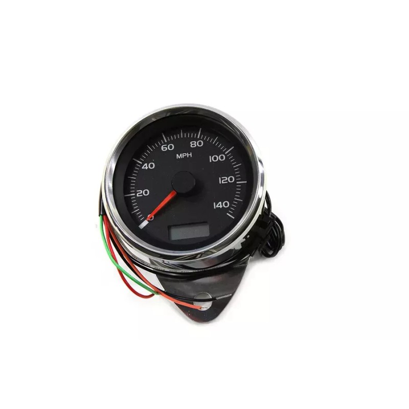 - Electronic speedometer 80mm features stainless housing and Y bracket.