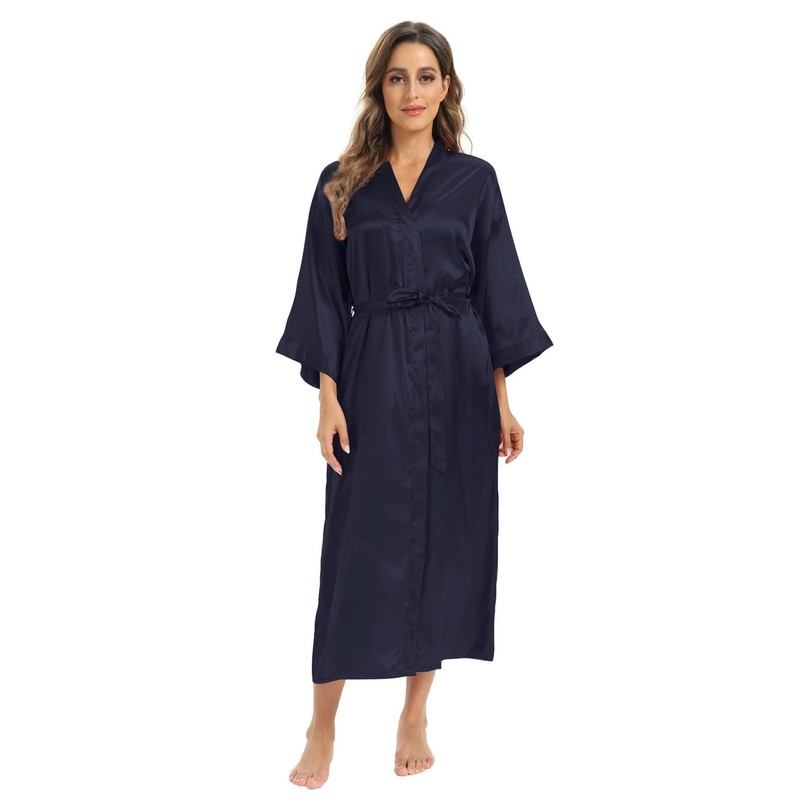V Vaborous Women's Soft Long Satin Robes Long Silk Robes Full Length Robes Kimonos Dressing Gowns, Navy, S/M
