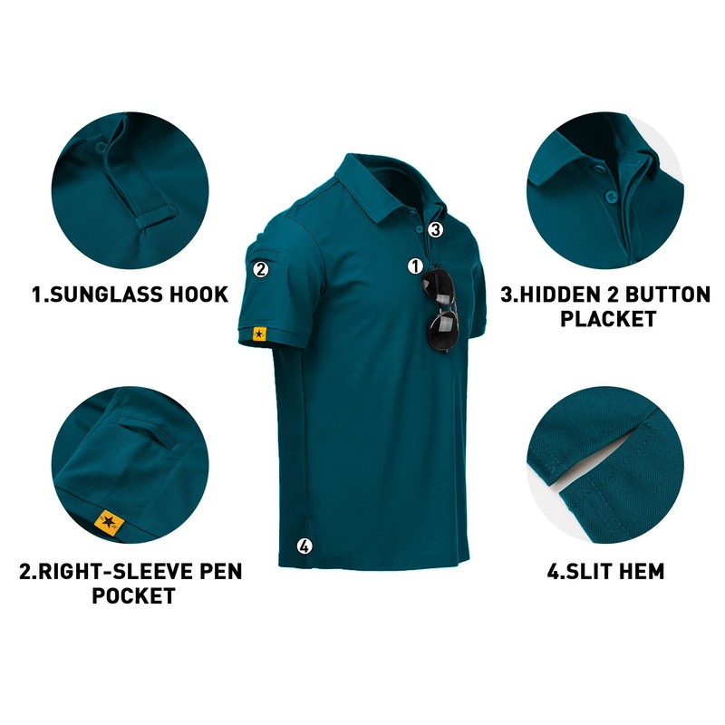 - MOISTURE WICKING: The fabric of the summer golf shirt absorbs moisture and sweat from the skin and quickly diffuses into the air to keep the skin dry and comfortable. Away from the swelter and odors