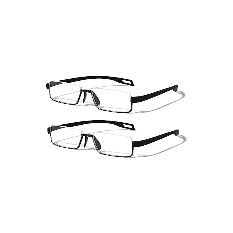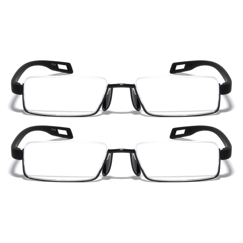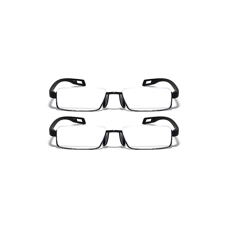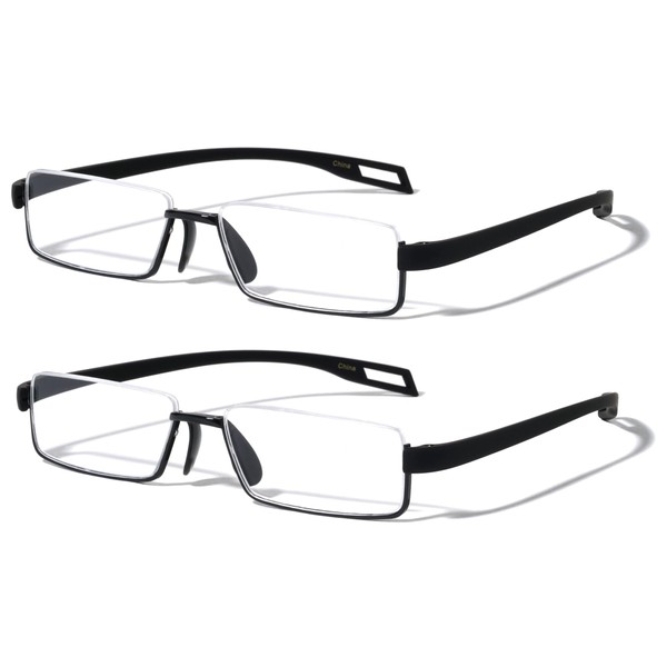 V.W.E. 2 Pairs Featherweight Slim Half Rim Memory Flex Reading Glasses With Anti-reflective AR Coating (2 Black, 3.00, multiplier_x)