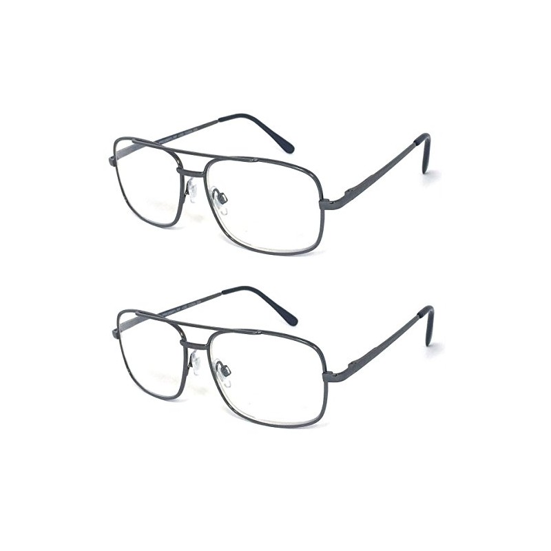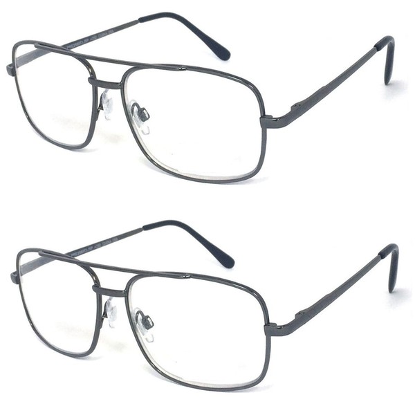 V.W.E. 2 Pairs Metal Frame Aviator No Line Progressive Clear Lens Spring Hinge Reading Glasses (Gunmetal, 1.75)