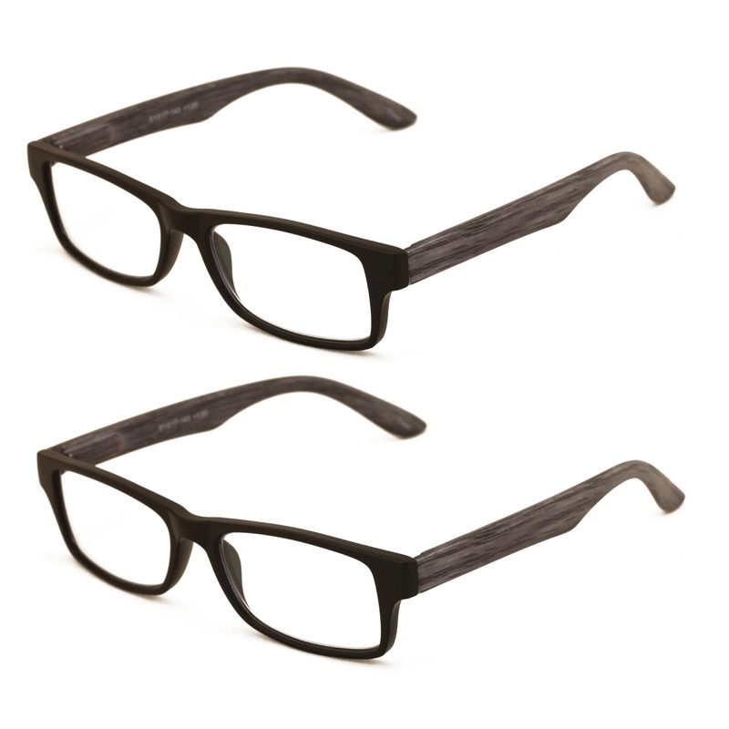 V.W.E. 2 Pairs of Wood Grain Printed Temple Arm Reading Glasses - Spring hinge men women readers (2 Grey, 2.50, x)