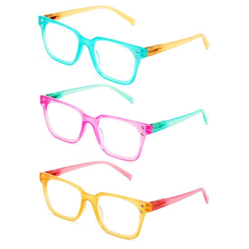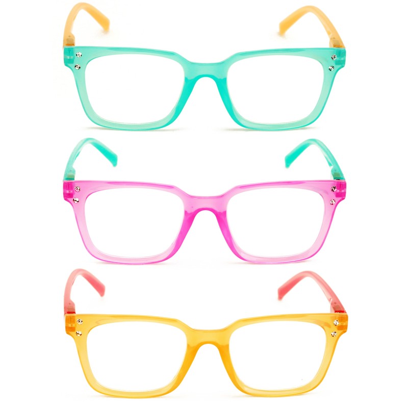 V.W.E. 3 Pairs Women Translucent Pastel 2-Tones Reading Glasses With Rhinesto...