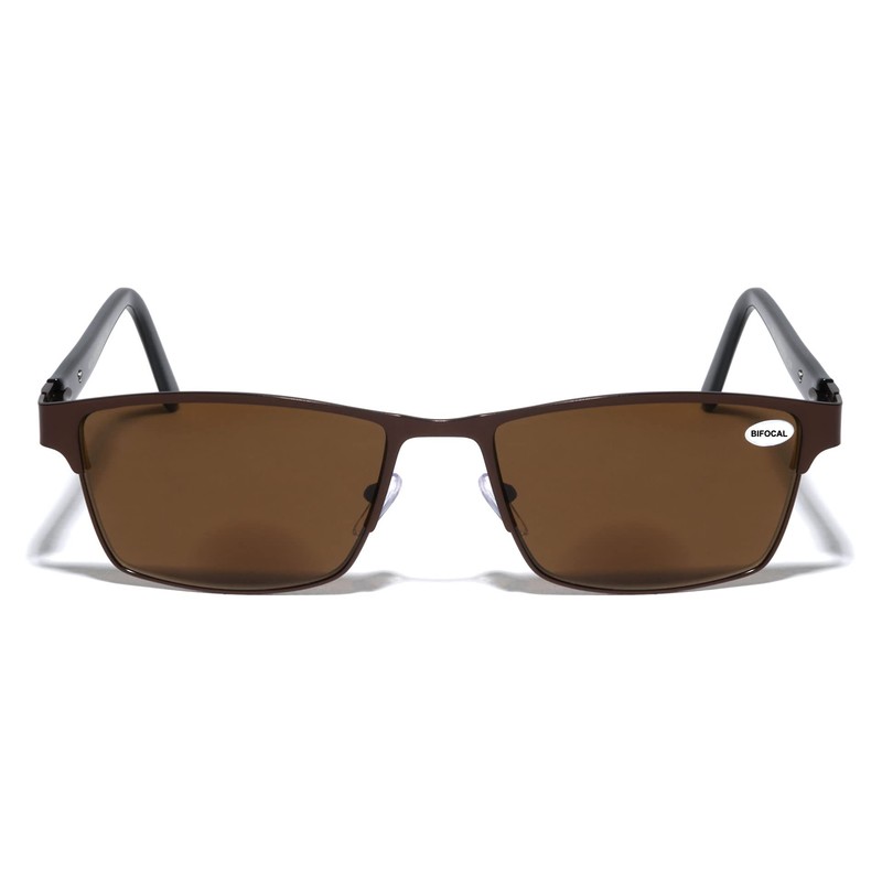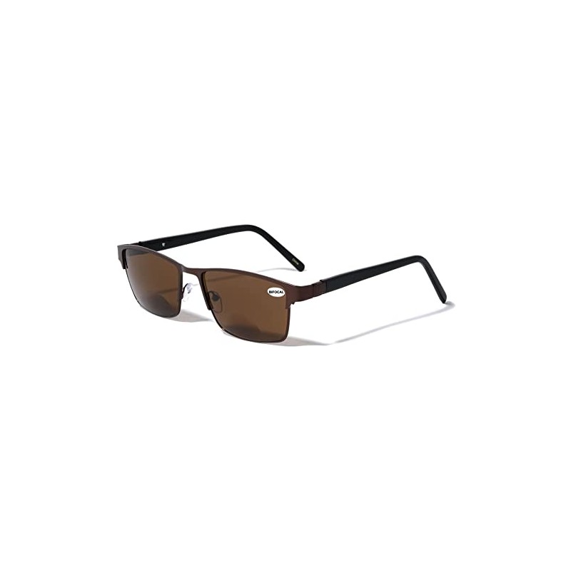 V.W.E. Men BIFOCAL Premium Rectangle Metal with Plastic Temple Extra Large Reader - 152mm Wide Frame Reading Glasses (Bifocal Brown Sun, 2.50, multiplier_x)