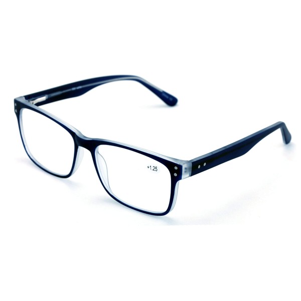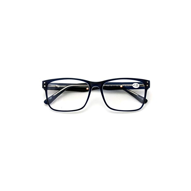 V.W.E. Men Premium Rectangle Stainless Steel Reading Glasses - Wide Fitment Metal Reader (Dark Blue, 2.50)