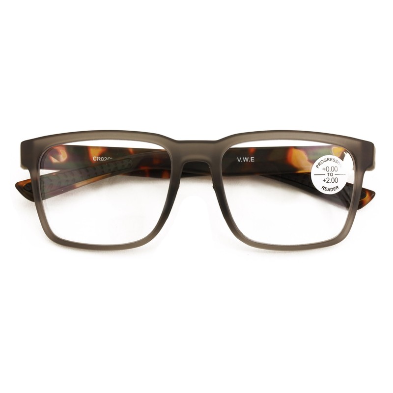 V.W.E. Men Progressive Reading Glasses No Line Clear on Top Bifocals Reader - Rectangular Matte Sport (Matte Grey/Tortoise, 2.00, x)