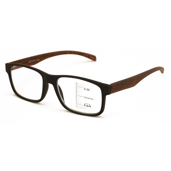 V.W.E. Men Rectangular Progressive Reading Glasses - No Line Clear on Top Bifocal Reader - Wood Grain Printed Temple (Black, 2.75, x)