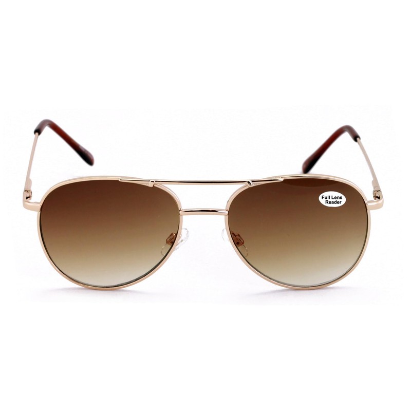 V.W.E. Metal Tinted Reading SunGlasses - Spring Hinge Tear Drop Full Lens Reader Gradient (Brown Tinted Reader, 2.75)