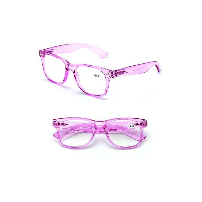 - 2 Pairs Transparent neon color frame, add fun and excitement to your reading eyewear. Durable frame with spring hinge design to fit most face.