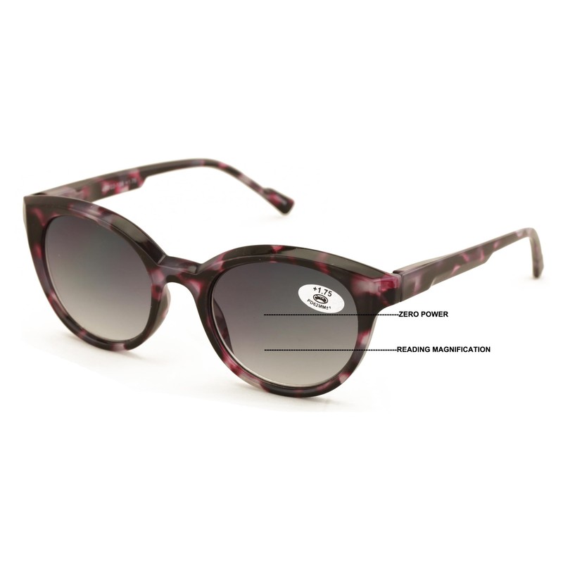 V.W.E. Women Round Progressive Bifocal Reading Sunglasses - No Line or Bubble - Zero Power on Top Reader (Purple, 1.50, x)
