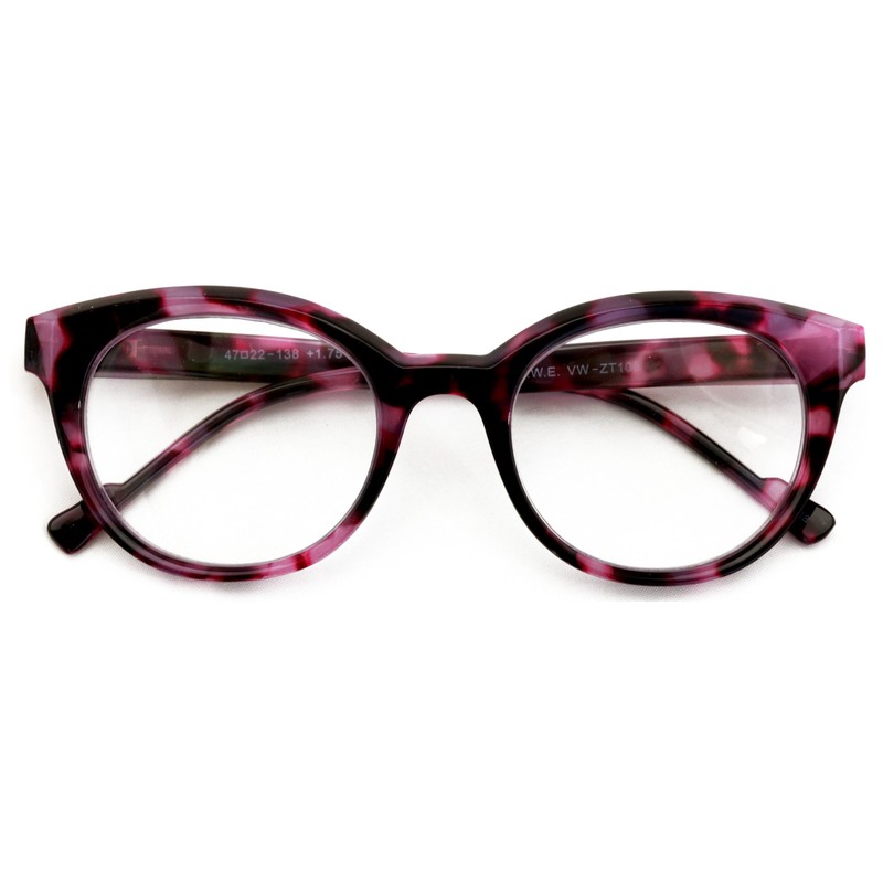 V.W.E. Women Round Progressive Clear Bifocal Reading glasses - No Line or Bubble - Zero Power on Top Reader (Purple, 2.50, x)