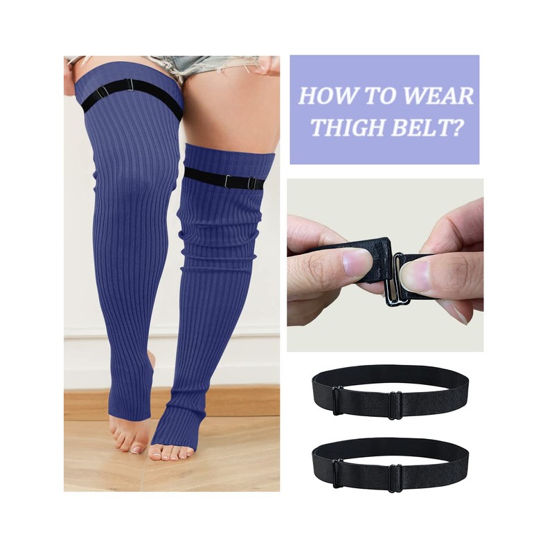 - 💕Plus size thigh high stirrup leg warmer for big girl and ladies; Stockings are about 34'' (86cm) long, and the stretched width is up to 29”~36" circumference. Suggest for For upper thighs 27"+ legs Come with Tight Straps & Adjustable buckles, up to 40'' circumference, it secures the leg warmers to adjusted size till you re-adjust it. (You can also use it on your other tights or socks as well). No sticky adhesive, no droopy, no roll down.