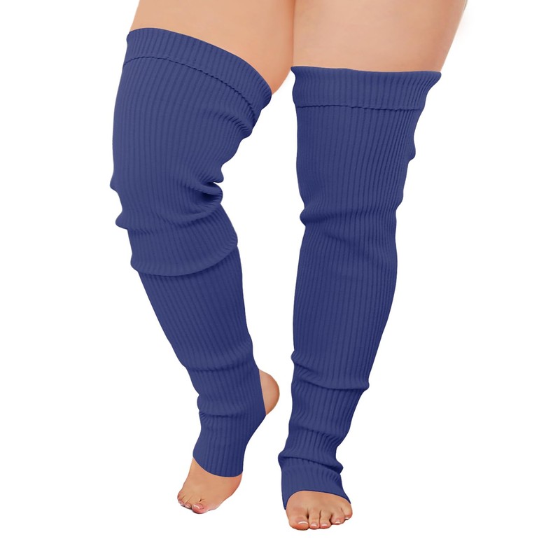 v28 Plus Size Knit Leg Warmer Women Thick Thigh High Boot Extra Long Large Socks(Plus Size- Navy)