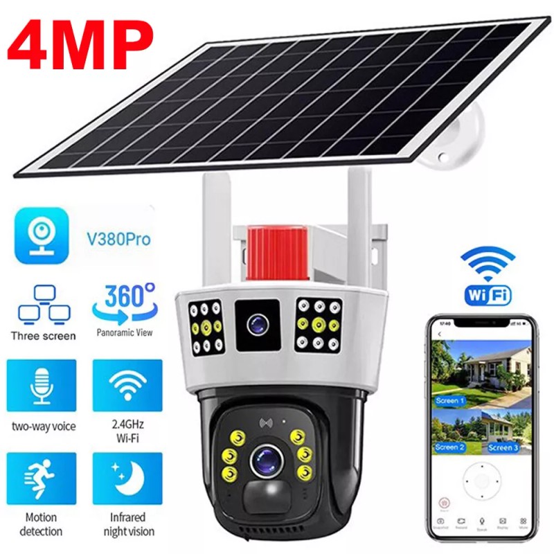V380Pro 3 Lens Solar Camera Outdoor WIFI Smart Home Security Wireless IP Camera
