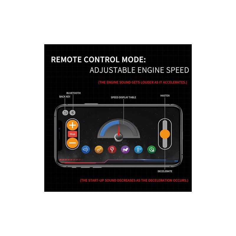 - Fully Automatic V8 Engine Kit - Programmable control, adjustable speed and realistic exhaust sound, precision components including electric chain drive, throttle valve, light strip lighting effect, and connected through mobile application to adjust racing engine speed and sound effect