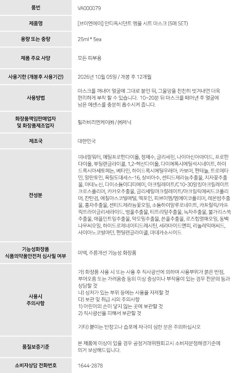 VA 1+1 안티옥시던트 앰플 시트 마스크 5매2개