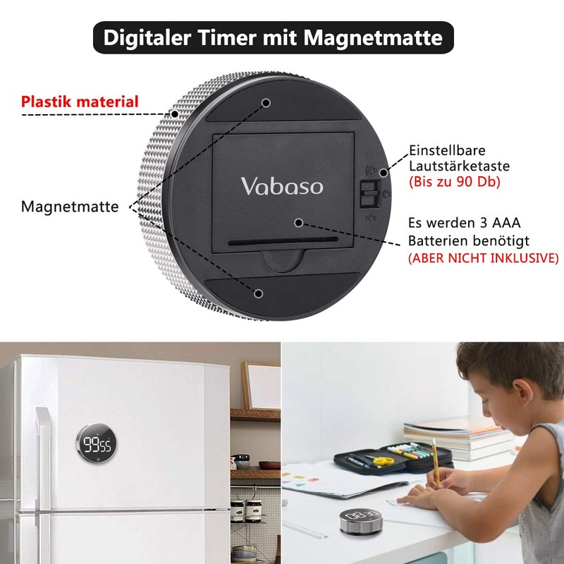 The biggest advantage of the Vabaso kitchen timer is that it can set the time easily, quickly and precisely. A perfect time counter for cooking and baking in the kitchen, for fitness training, games, classroom teaching, learning and more.