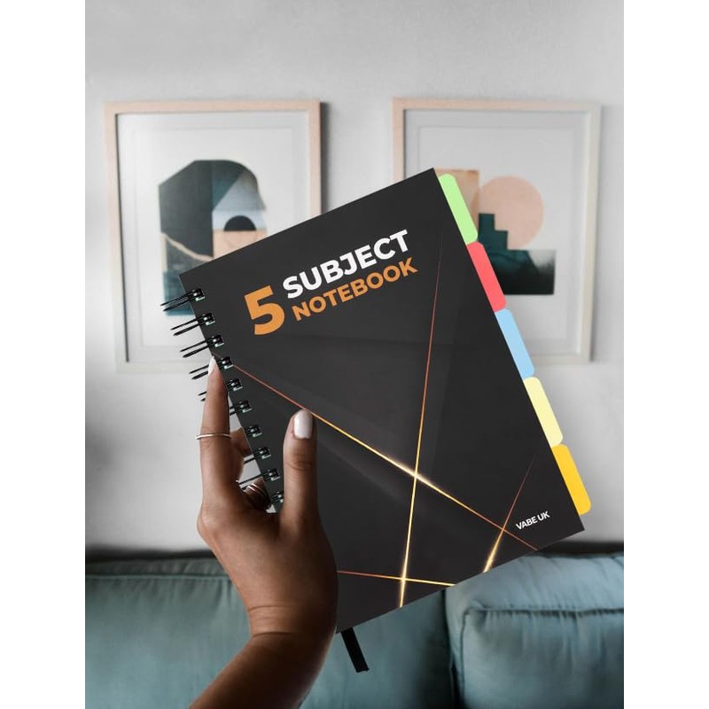 - Twin Spiral Binding - This Vabe UK a5 notebook with dividers is made with twin spiral binding making it very durable and sturdy, this allows it to lay flat or fold back on itself.