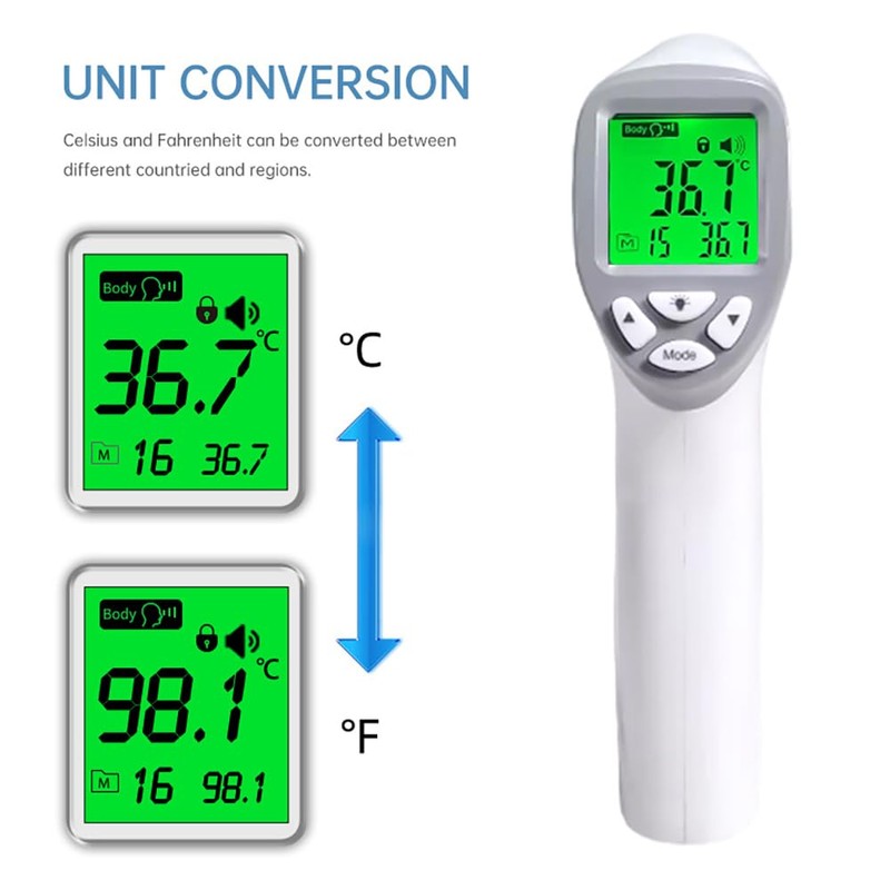 - Non-contact infrared technology reads from the forehead, eliminating the need for physical contact and preventing cross-contamination between several people. Safer and healthier, especially reading from the forehead, which does not disturb the patient during critical moments of rest. hermometers