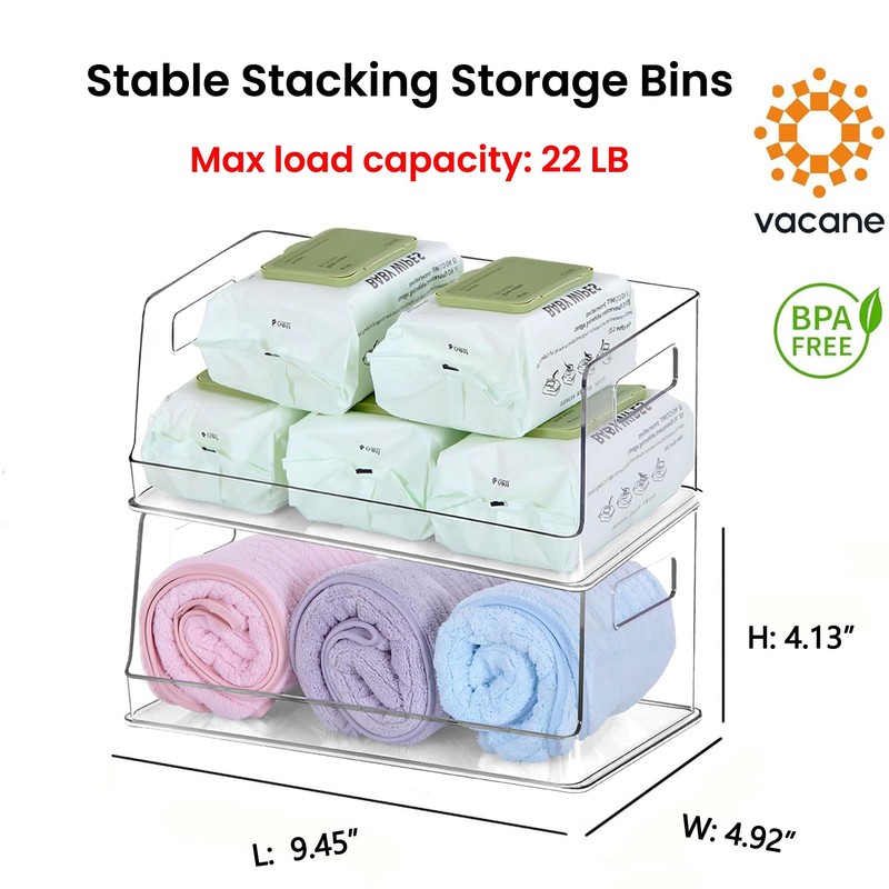 - 【Large Front Opening】The large front opening of these stacking storage bins ensures hassle-free retrieval of your stored items. Say goodbye to rummaging through clutter and hello to streamlined, efficient storage.