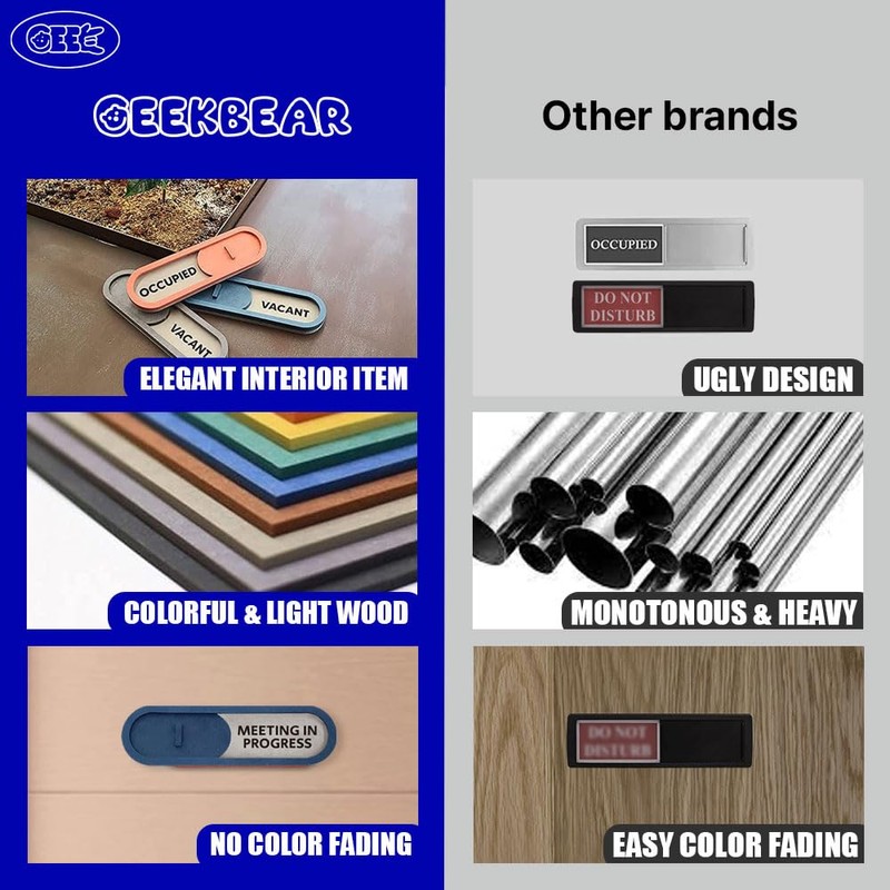 - ELEGANT INTERIOR ITEM - GEEKBEAR privacy signs don't just signal availability, they also ADD ELEGANCE TO YOUR SPACE, blending seamlessly with your interior design. Ideal for conference rooms, offices, medical offices, museums, or any space indicating availability.