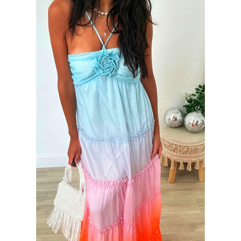 - Key features: 3D flower embellishments, ruffle, high waist, adjustable spaghetti strap, flowy maxi cami dresses, from brunch to beach