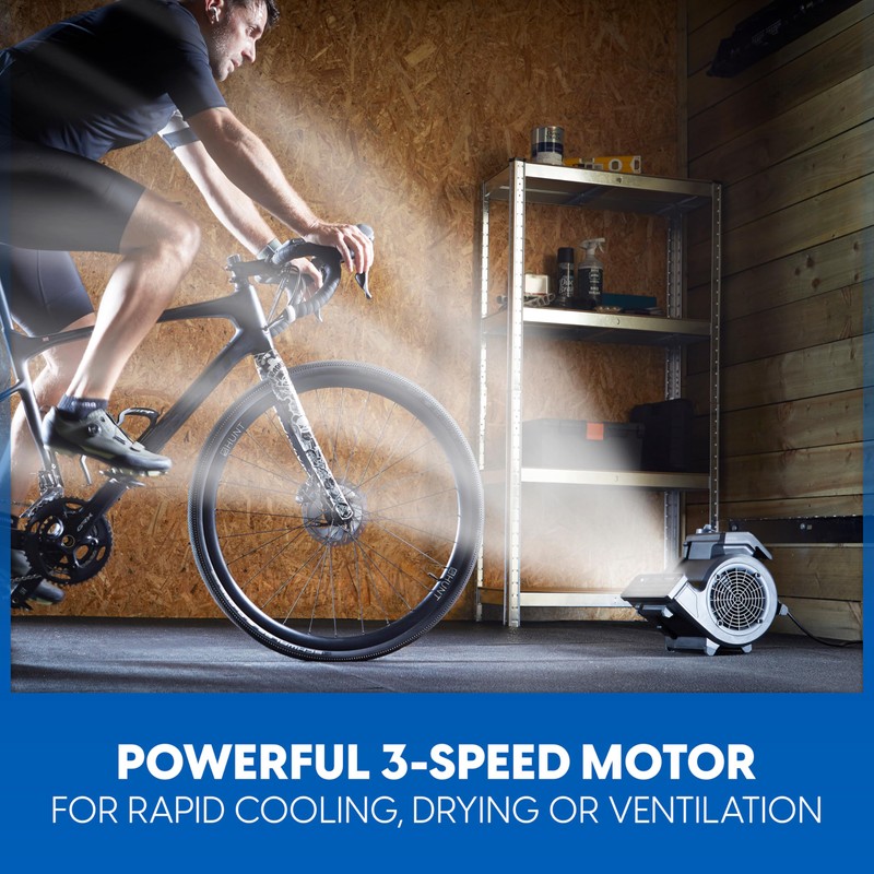 - [3 SPEED SETTINGS] – Control the airspeed with the speed control dial or remote-control. Cycle through 3 pre-programmed air mover speeds.