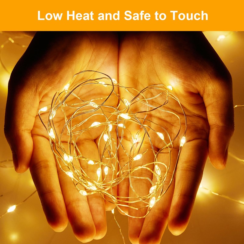 - ?Waterproof and Safe: Dimmable copper wire fairy lights is IP65 waterproof, you can use them in rainy or humid conditions. However, the USB adapter is not waterproof, please keep it away from water. Low consumption and high efficiency. The LED string lights will not overheat after many hours of use. you need less electricity.