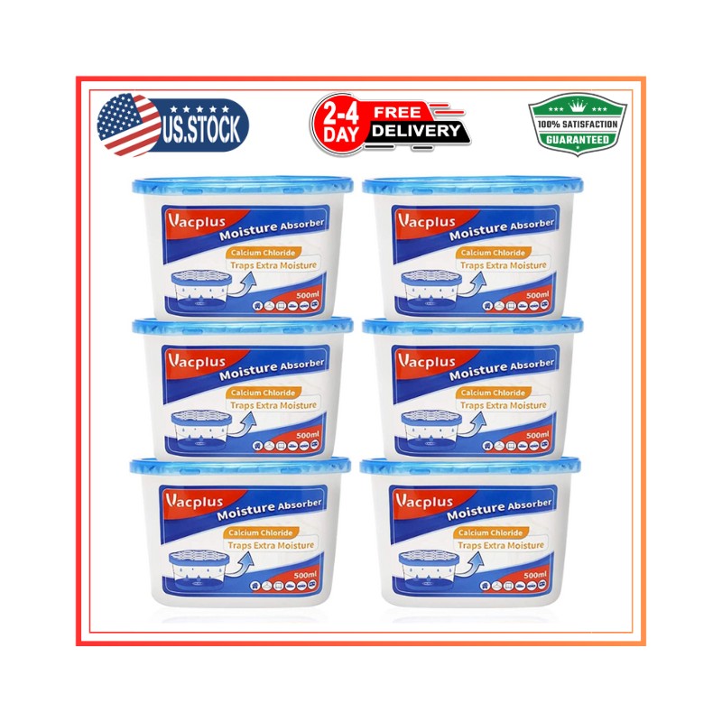 Vacplus Moisture Absorbers 6-Pack - Portable Humidity Control for Home & Car