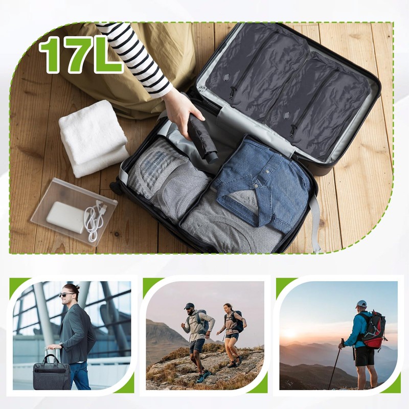 - 【Spacious Yet Compact】:Each Vacuum Bags measures 44 x 29 x 14 cm (17.3 x 11.4 x 5.5 inches), offering an 17-liter capacity to hold multiple garments. Their suitcase-friendly size makes them perfect for travelers who need to stay organized without wasting space.