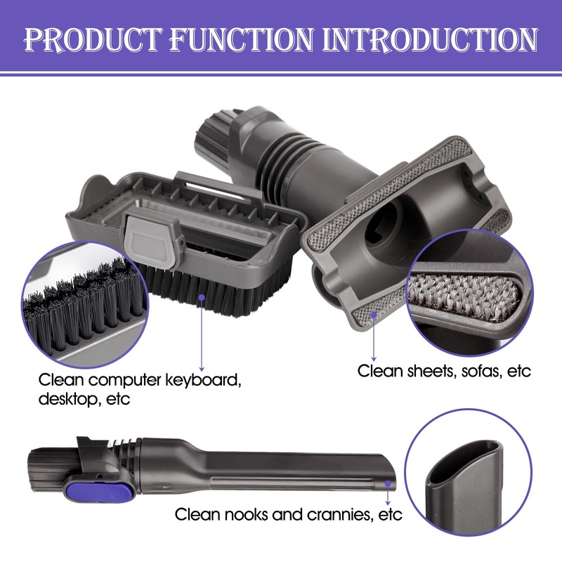 Vacuum Crevice Tool Brush Replacement Parts Compatible with Shark Pet Cordless Stick IX141 IZ462H IZ483H IZ363HT IZ361H IZ163H IZ362H Removable two-in-one Tool Brush Attachments for D-Shaped Vacuum