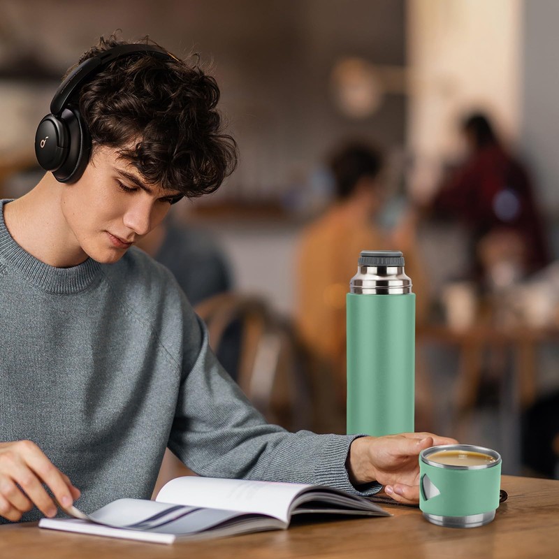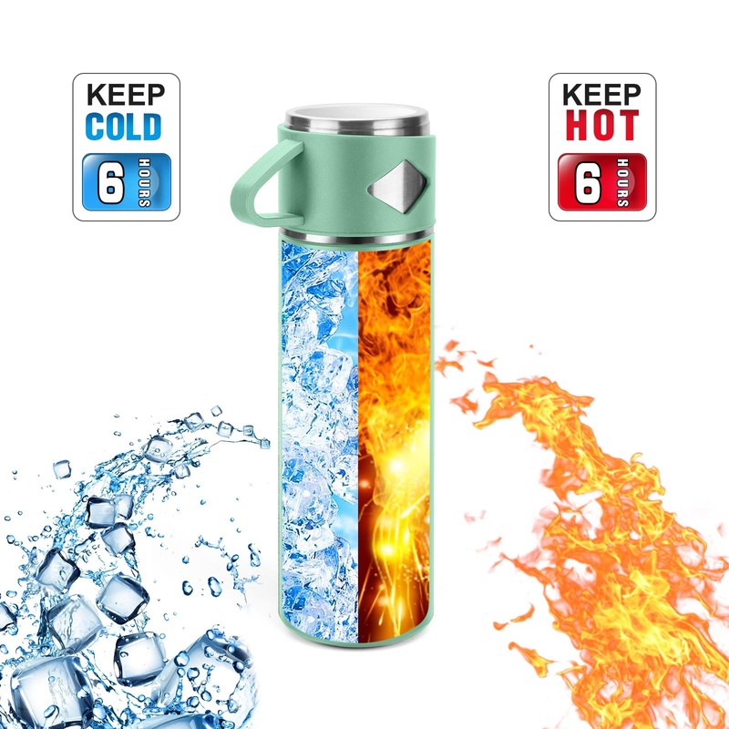 Vacuum Insulated Flask 700ml/23.6oz Stainless Steel Thermo Bottle with Cup for Coffee Water Hot and Cold Drink Flasks.(Green,Set)