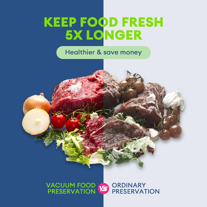 - 💨 Powerful 60kPa Suction for Fast Vacuuming:Equipped with a high-efficiency 60kPa vacuum pump, this sealer quickly removes air to lock in freshness. Seals in just 7 seconds and vacuums in 15—perfect for preserving meat, vegetables, snacks, and more.