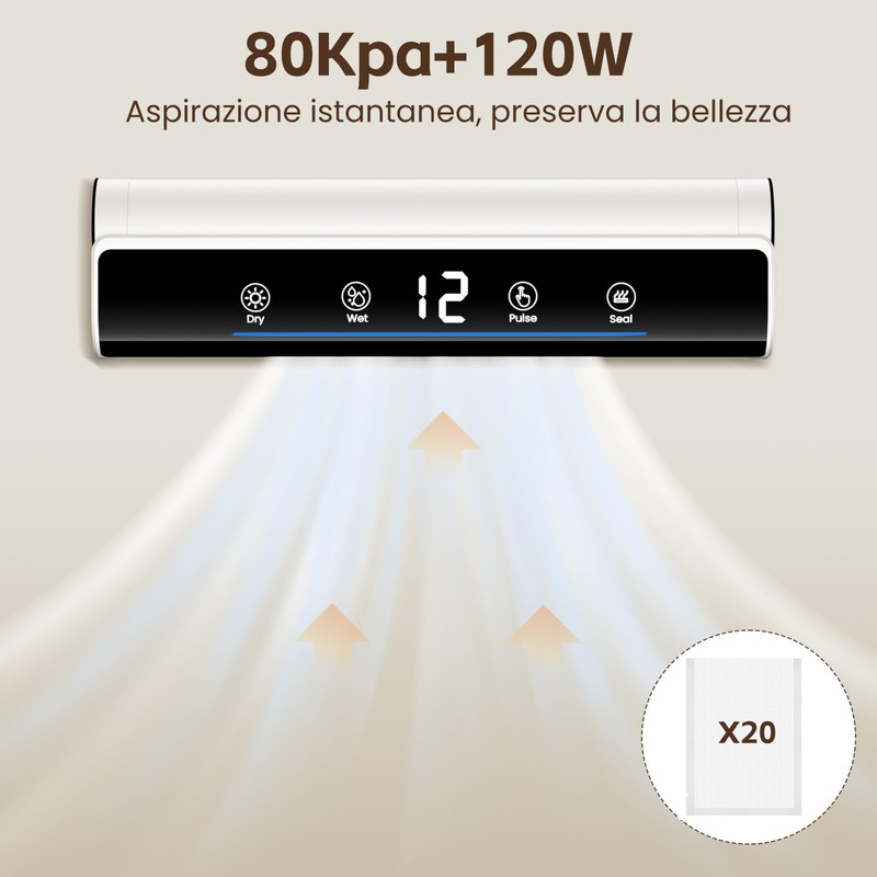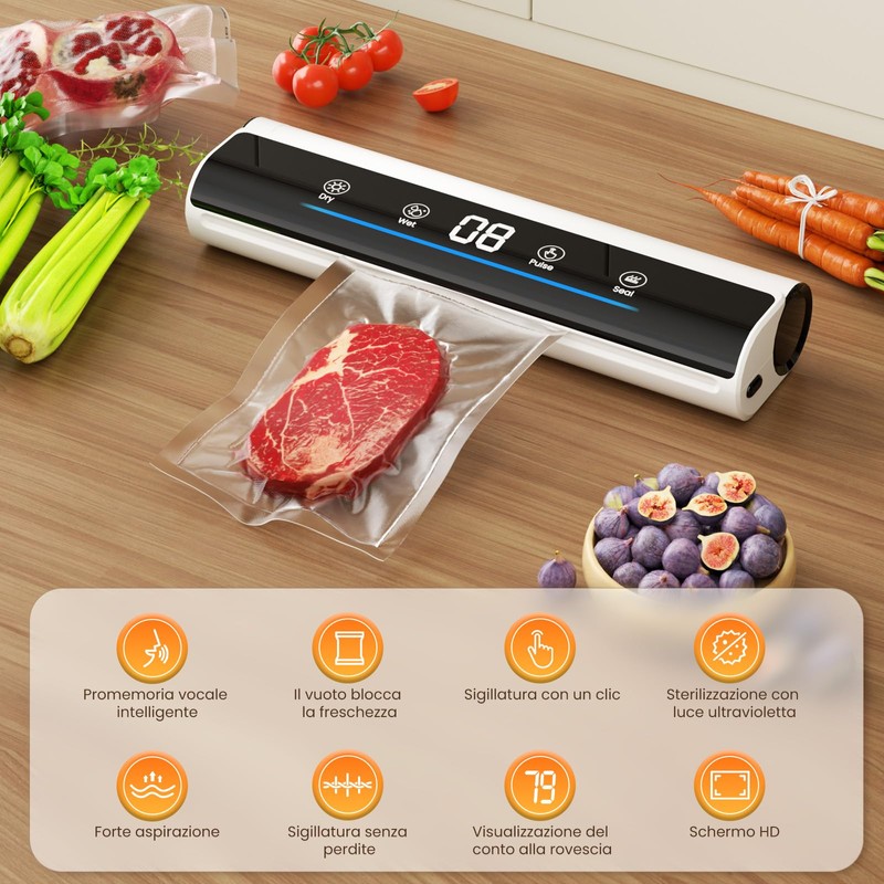 - Efficient vacuum sealing: Mihoho is equipped with a 130 W double pump motor for a quick and powerful seal, which supports 70 consecutive seals. It only takes 20-30 seconds to complete the vacuum sealing process of food. The integrated screen shows the time and provides a clear and intuitive display of the process duration