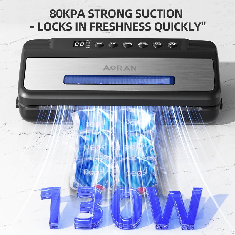 - 80KPa Strong Suction for Maximum Freshness: 80KPa vacuum power extends food freshness up to 5X longer than standard storage. Creates airtight seals that lock in nutrients and moisture while preventing freezer burn on meats, cheeses, and seasonal produce.