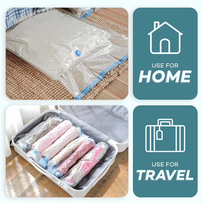 - 🟢[EASY TO USE] - Put folded clothes in storage bag. Zip-up the bag to seal it using clip. Take off the valve and extract all air using any vacuum machine or vacuum hand pump. Press and flatten the bag from all sides. Then close the valve immediately. These Reusable Bags Add Convenience to your Life!
