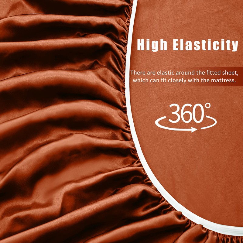 - 100 Percent Polyester Satin Bed Sheets: Luxury satin sheets are made of high-quality 100 percent Polyester (Satin Fabric). Silky satin sheets has a smooth touch like pure silk with charming and shiny colors, it helps protect skin and reduce facial wrinkles. Satin fabric is soft and breathable, which can relieve your daytime fatigue and bring you quality sleep.