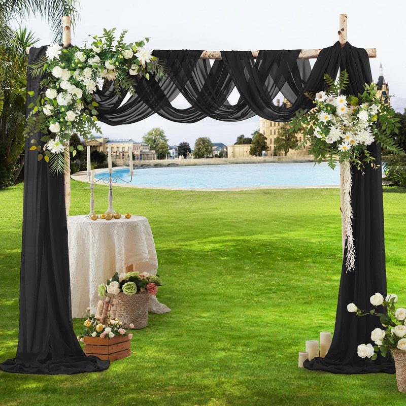 VACVELT Black Chiffon Fabric by The Yard, 60 Inch Wide Chiffon Sheer Fabric Bolt Wedding Draping Fabric, Soft Chiffon Fabric for Wedding Arch Draping Backdrop, Party Decoration (Pre-Cut, 3 Yards)