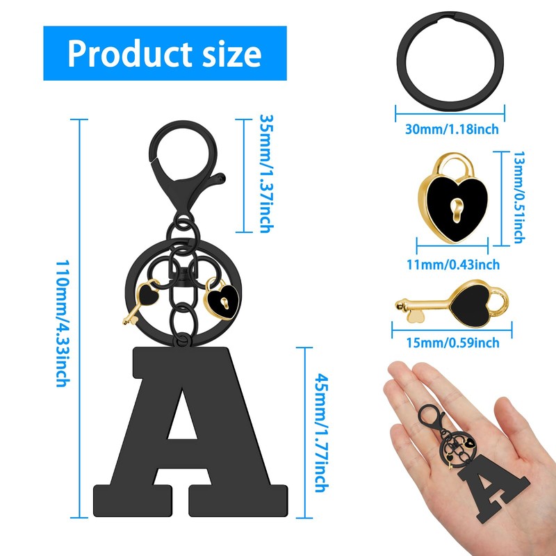 - Initial Keychain Accessory:The letter keychain for women design with heart pendant, which is very cute and stylish. Classic black adds enchantment to key chains, It can meet your diverse decorative needs.From initial letter A to initial letter Z. Total have 26 letters to choose from! You can choose anyone letter as your own unique identifier.