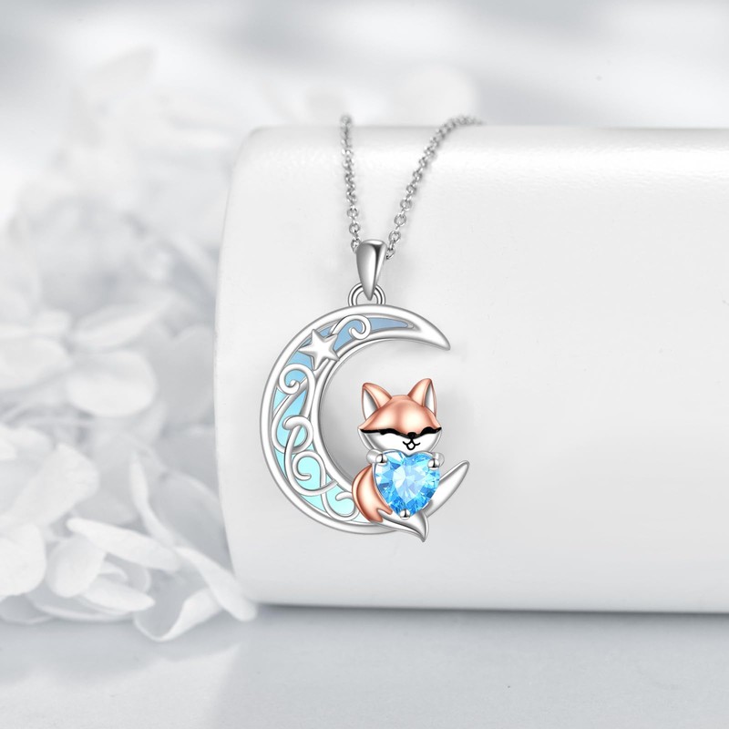 Vadmans Fox Nacklace Sterling Silver Moonstone Pendant Cute Animal Nacklace Jewelry Gift for Women for Fox Lovers